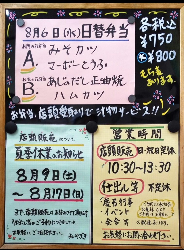8月6日(水曜日)の日替弁当