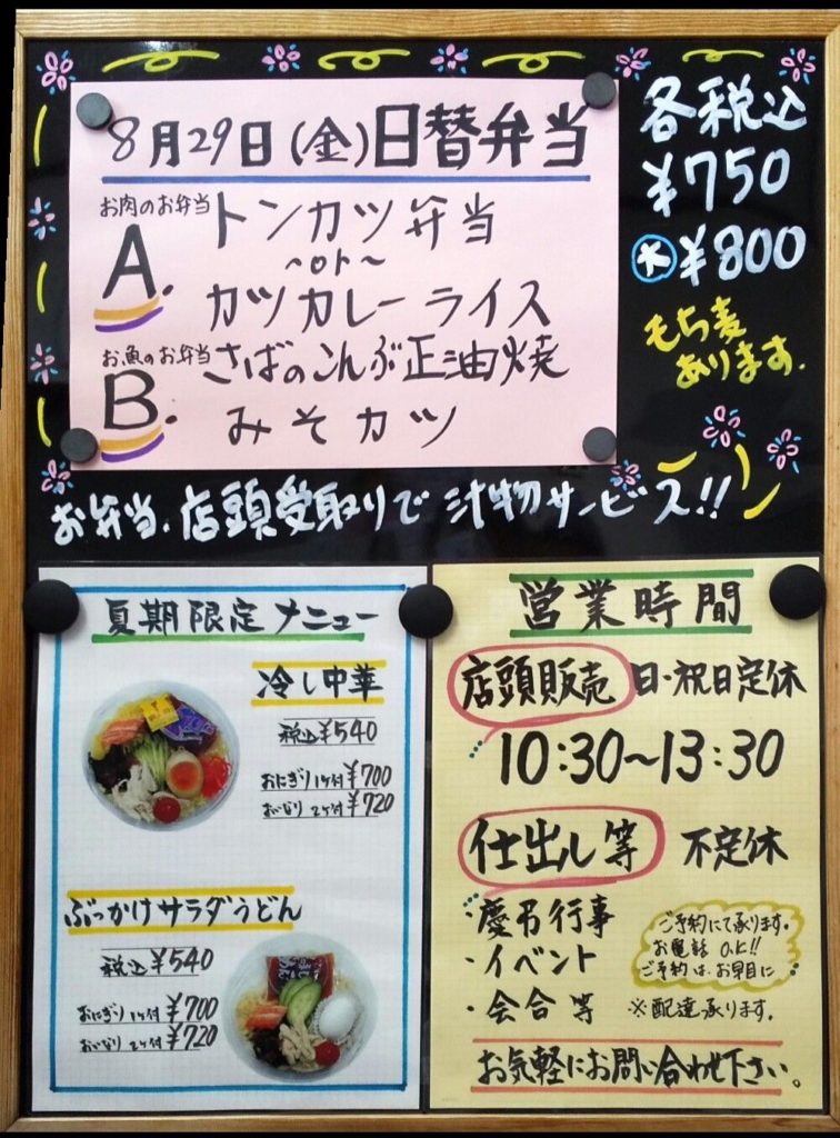 8月29日(金曜日)の日替弁当