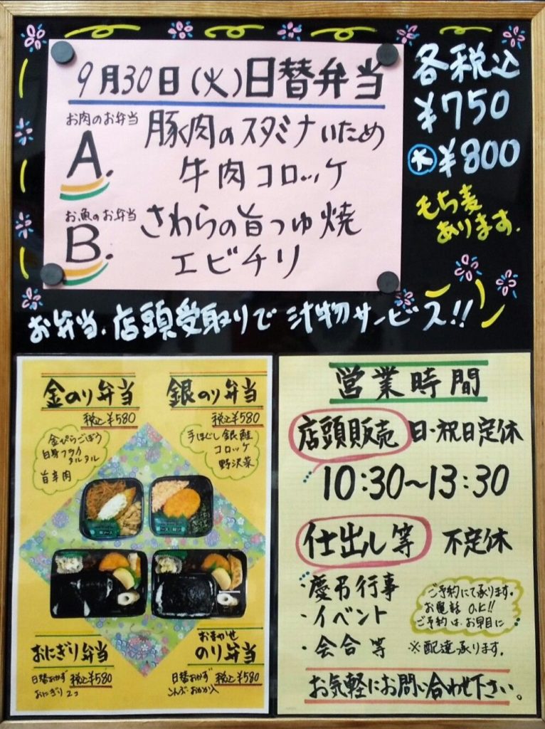 9月30日(火曜日)の日替弁当