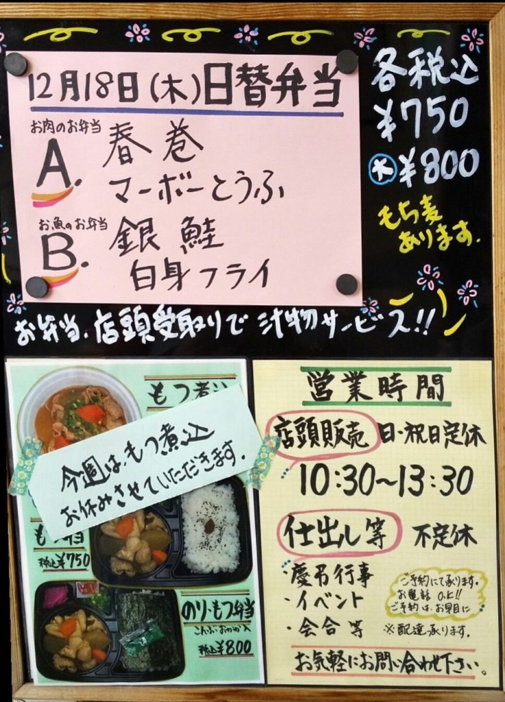 12月18日(木)の日替弁当