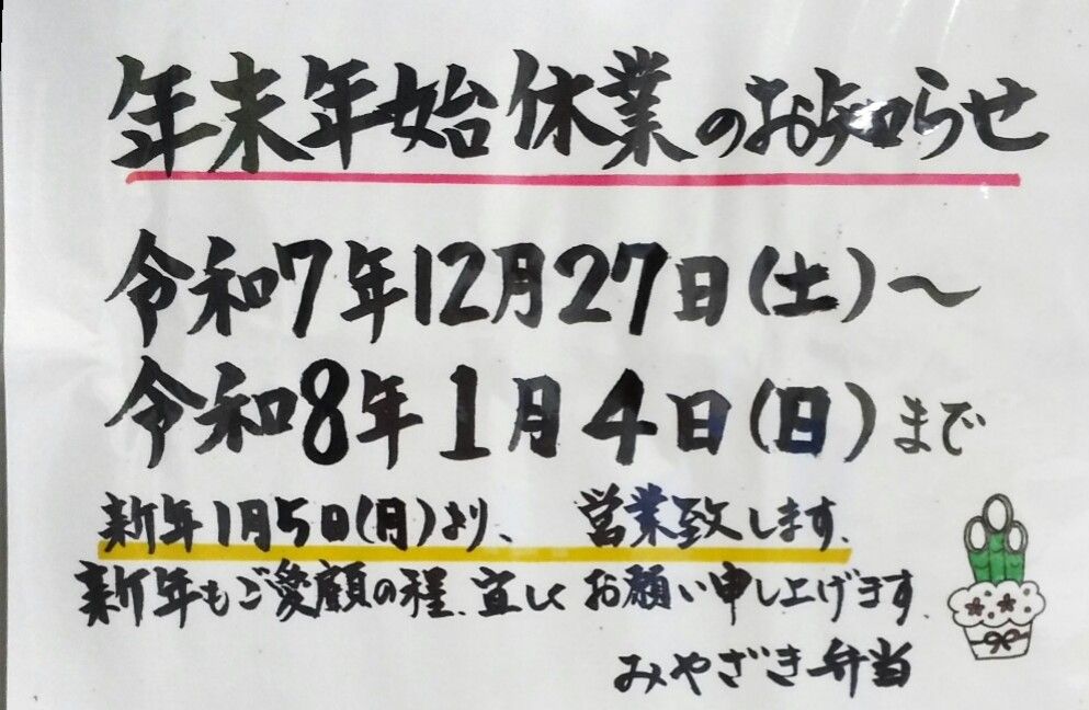 年末年始休業のお知らせ